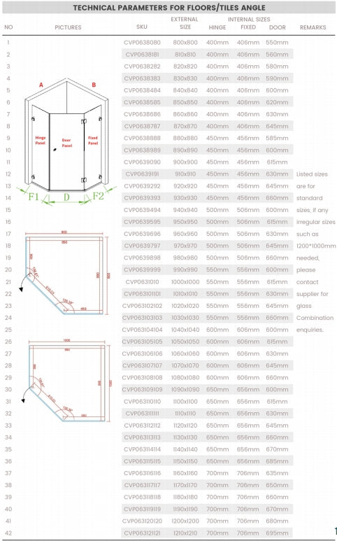 View full detailsFeature Range: Covey Type: Frameless Diamond Total height (mm):2000mm,support both left and right hand door Fitting Color: Chrome, Black, Brush...
